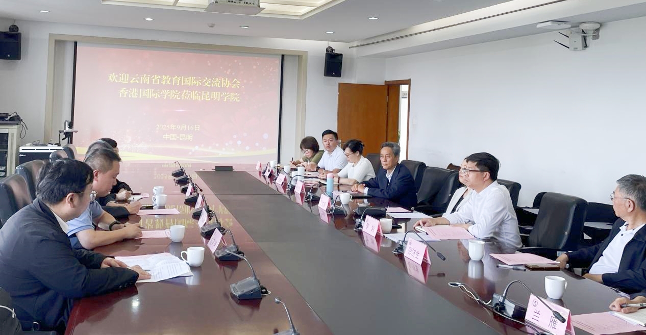 9月16日,云南省教育国际交流协会副会长杨光民、香港国际学院主席陈冬海一行到校交流座谈。学校党委副书记、校长丁文丽,党委委员、副校长李剀与来宾座谈。