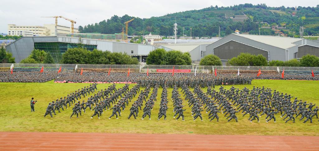 9月19日上午9时整,beat365官方网站2025级本科新生军事技能训练成果展示暨总结大会于学校田径运动场隆重举行。学校党委委员、副校长彭志远,党委委员、纪委书记罗荣辉,官渡区人民武装部部长上校曾宪华等领导出席此次大会,彭志远主持。学校相关职能部门、二级学院负责人,带训辅导员、承训教官以及2025级全体本科新生共同参会。