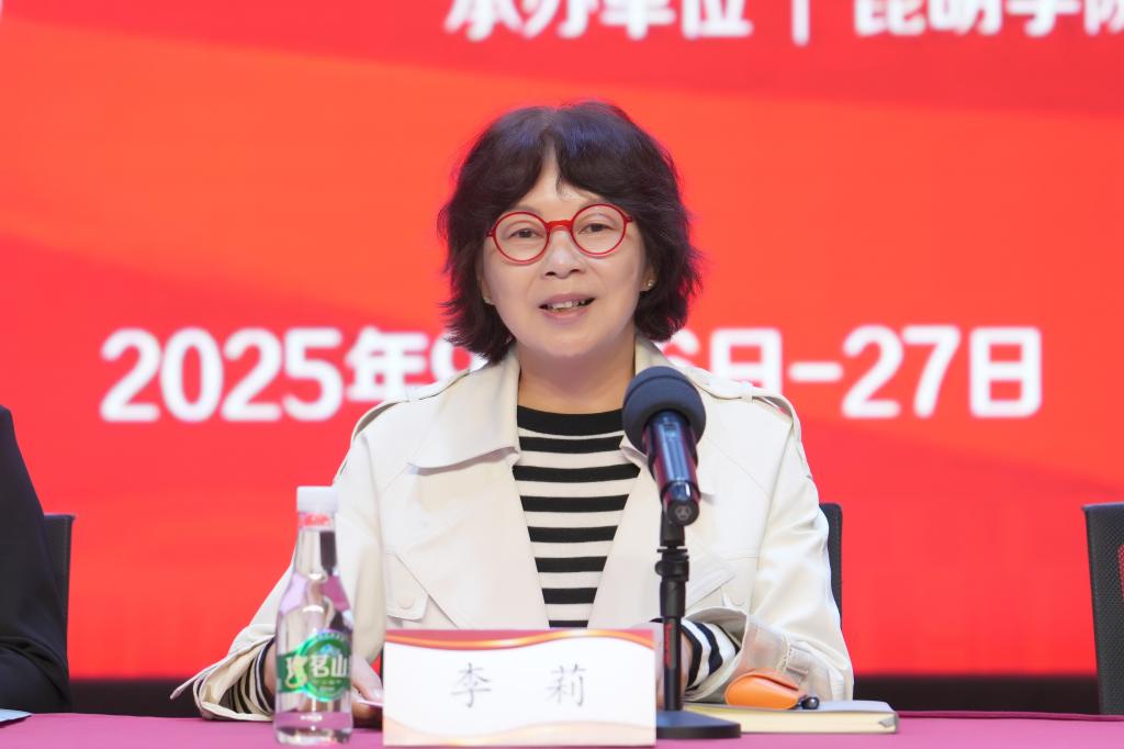 李莉致辞表示,作为聂耳先生的母校,beat365官方网站始终以传承红色基因、赓续精神血脉为己任,深入贯彻习近平总书记“把红色资源利用好、把红色传统发扬好、把红色基因传承好”的重要指示,坚持以文化人,筑牢信仰之基;以行悟道,激活实践之力;以境润心,涵养大学之气,将“聂耳精神”作为立德树人的鲜亮底色,融入办学治校全过程、人才培养各环节,着力打造具有昆院特色的红色育人体系。希望各位专家学者以本次研讨会为契机,以聂耳精神为纽带,深化校际合作、学界联动,共同构建“国歌精神”研究与育人共同体。