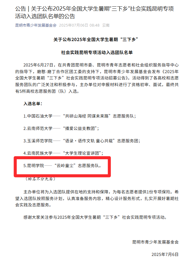 学校党委高度重视本次暑期社会实践工作,成立工作领导小组,系统谋划、全面动员,在思想引领、能力培养、成果产出及社会影响等方面取得了显著成效,切实提升了实践育人的质量和效能。实践活动受到媒体广泛关注,累计在国家级、省市级平台发布相关报道131篇,并有5支团队入选国家级重点团队和地市级专项团队,提升了学校社会实践活动的品牌美誉度与社会影响力。