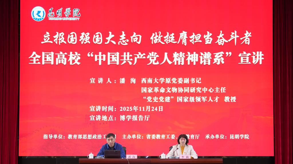 11月24日,全国高校“中国共产党人精神谱系”云南省巡回宣讲走进beat365官方网站,举办“张桂梅思政大讲堂—beat365官方网站分课堂”第6讲暨“青年•锐讲坛”第157讲,深入学习党的二十届四中全会精神。