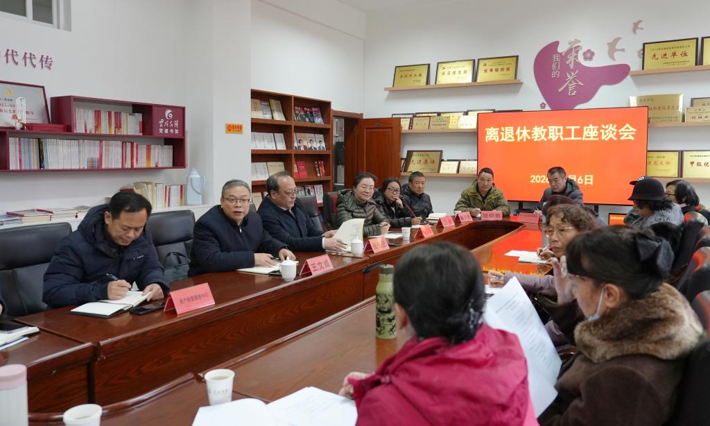 为认真贯彻省委关于进一步加强离退休干部工作的要求,让离退休教职工了解学校建设发展情况,为学校发展建言献策,1月6日下午,学校在昆师路校区召开2025年离退休教职工情况通报会和座谈会。学校党委副书记王文成出席会议。离退休教职工党委书记、工作处处长张恒云对2025年离退休党委工作进行了简要总结。老干部工作委员会和离退休工作领导小组成员单位负责人、关工委负责人,和80余名离退休教职工代表参加了会议。