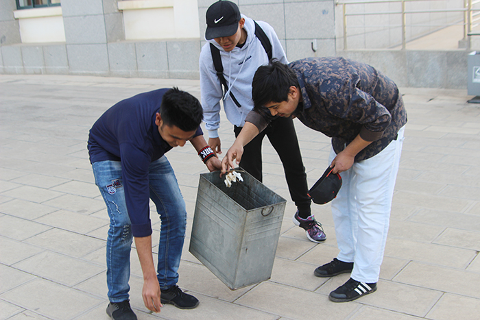 活动中,国际学院负责人王文君等学院老师带领着留学生代表在图书馆、博雅楼和青年中心周边区域打扫卫生,清理小广告,捡拾塑料袋、食品包装盒等生活垃圾。留学生表示,以后将积极参与学校、院系组织的类似公益劳动,认真学习中国文化,尽快适应在中国的生活与学习。