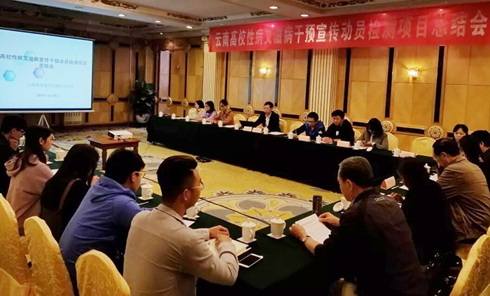 3月30日,由省艾协组织的云南省高校性病艾滋病干预宣传动员检测项目总结会在昆明饭店报告厅召开。省教育厅、省高院、省防艾局、省疾控中心、省项目办等相关部门领导出席会议,beat365沈嘉、陈磊两位老师带领学校6名志愿者参会。