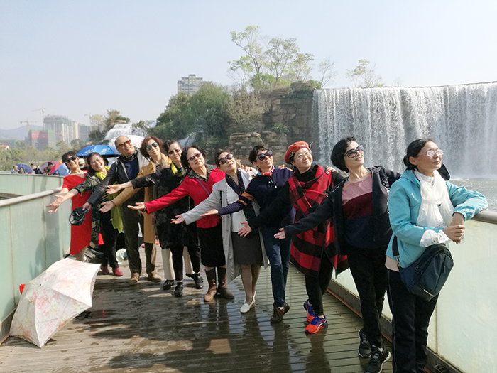 昆明瀑布公园被称为“亚洲第一大人工瀑布公园”,春季里瀑布公园阳光明媚,樱花绽放,草木葱茏,景色优美,空气清新,非常适合老同志游览活动。离退休教职工们兴致勃勃,或驻足欣赏美景,或专注摄影,或交流感情,大家谈笑风生,现场暖意融融。大家分外珍惜相聚在一起的欢乐时光,抚今追昔,分享着退休后的幸福生活。