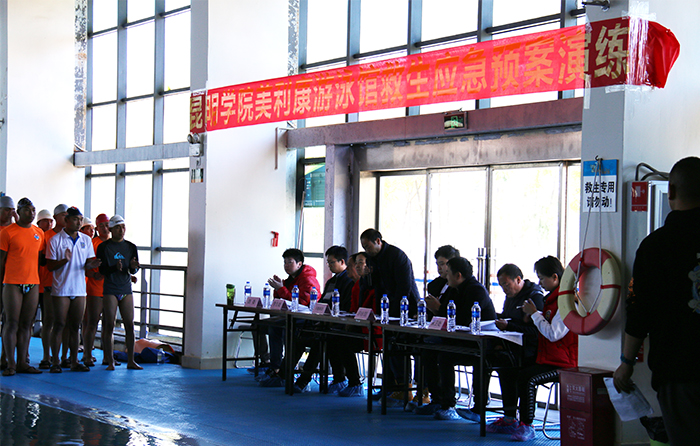 12月26日,为加强游泳馆安全管理,防止溺水事故发生,确保泳客生命和财产安全,按照“以人为本,安全第一,预防为主”的原则,后勤集团与昆明美利康节能科技有限公司于在beat365官方网站游泳馆联合举办了2018年水上救生应急演练。
