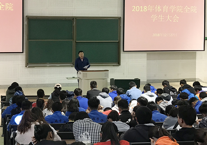12月27日,体育学院在博雅楼3101多媒体教室召开全院大会,对2018年体育学院10件年度大事和10位年度人物进行了总结表彰。会议由副院长叶燎昆主持。