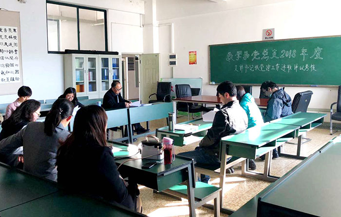 按照评议考核要求,教师支部书记刘啟宽、学生支部书记施菲、李亚芹、高苹分别结合本支部抓党建工作情况,围绕去年述职评议考核指出问题的整改落实情况、2018年抓基层党建工作取得的成效、存在的问题以及下一步工作思路进行了述职发言。