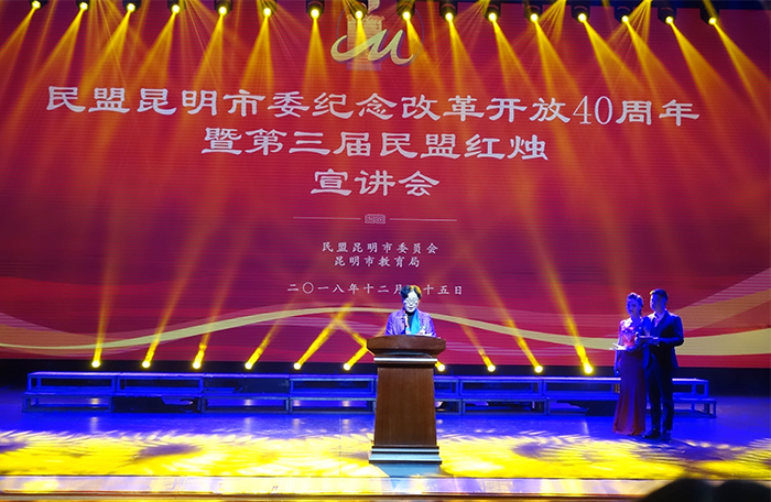 12月25日,民盟昆明市委“纪念改革开放40周年暨第三届民盟红烛宣讲会”在昆明市工人文化宫职工剧场举行。 民盟beat365官方网站总支盟员、人文学院副教授李艳峰博士荣获第三届“民盟红烛”称号。