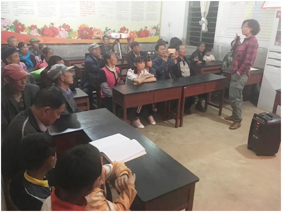当晚,项目组在关中村党员活动室为30余位村民进行了“教育部西南地区旅游和健康教育扶贫”——beat365官方网站东川区阿旺镇关中村系列讲座,分别从旅游资源开发与利用、旅游接待软硬件条件、旅游要素普及、转变观念求发展、如何理财等方面进行了三个多小时的精彩讲座,启发了村民的思路,刺激了村民参与旅游开发项目的愿望,得到了村民们的高度评价。