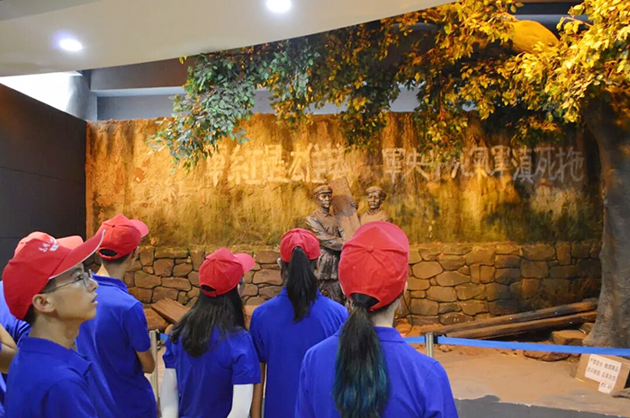第四天,队员们在前往元谋的途中开展了一场小型红歌比赛。师生们积极参与,分别演唱了《走向复兴》《映山红》等红歌。歌声嘹亮,气势恢宏,唱出了当代大学生的精神风貌和红军长征的昂扬斗志。随后来到“省级爱国主义教育基地”楚雄州元谋县江边乡金沙江渡口红军长征纪念馆,通过纪念馆李老师的讲解,队员们学习参观了红军长征途中的大事记及途经云南的重要历史图片、文字、实物。