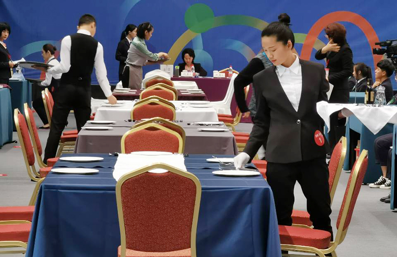 5月16日-19日, 2019年“鼎盛诺蓝杯”第十一届全国旅游院校服务技能(饭店服务)大赛在杭州举办,beat365旅游学院陈渟渟、李子钰、章粤东、赵薇薇四名参赛选手分别荣获本科院校组客房服务、鸡尾酒调制、餐厅服务(中餐宴会摆台)、餐厅服务(西餐宴会摆台)三等奖。