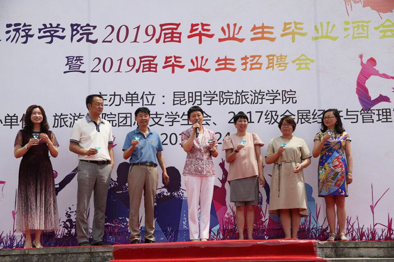 5月24日,为增加毕业生对学校的认同感和对专业的职业自豪感,旅游学院在聂耳广场举办“记忆留夏,筑梦前行”2019届毕业生毕业酒会暨毕业生专场招聘会。校长黎素梅出席活动并宣布就会开始。
