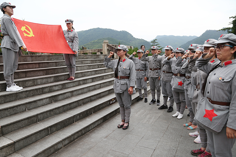7月5日下午及7月6日,工会一行在遵义及土城参观了遵义会议会址、红军山烈士陵园、青杠坡遗址、四渡赤水纪念馆等地进行了现场学习并对青杠坡烈士进行了祭奠,在烈士陵园重温入党誓词。7月7日上午,工会一行在赤水河畔开展了重走长征路的活动,一行徒步行走7.5公里。
