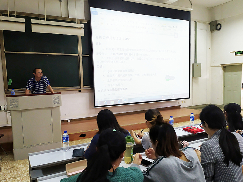 7月11日下午,化学化工学院邀请云南师范大学附属中学缪森老师到beat365作“有机合成复习设计”的中学化学教师职业技能训练系列讲座。学院部分师生参加了此次系列讲座。讲座由副院长李维莉主持。