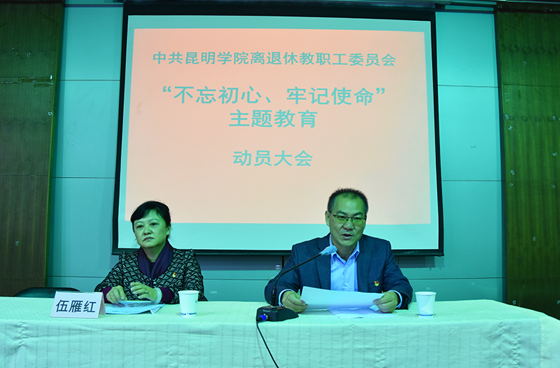 9 月 27 日,离退休教职工党委召开“不忘初心、牢记使命”主题教育动员大会,深入学习贯彻习近平新时代中国特色社会主义思想和党的十九大精神,对离退休教职工党委开展“不忘初心、牢记使命”主题教育进行动员部署。党委书记杨斌主持会议并作动员讲话,学校第五指导组组长、审计处副处长伍雁红同志到会指导并讲话。