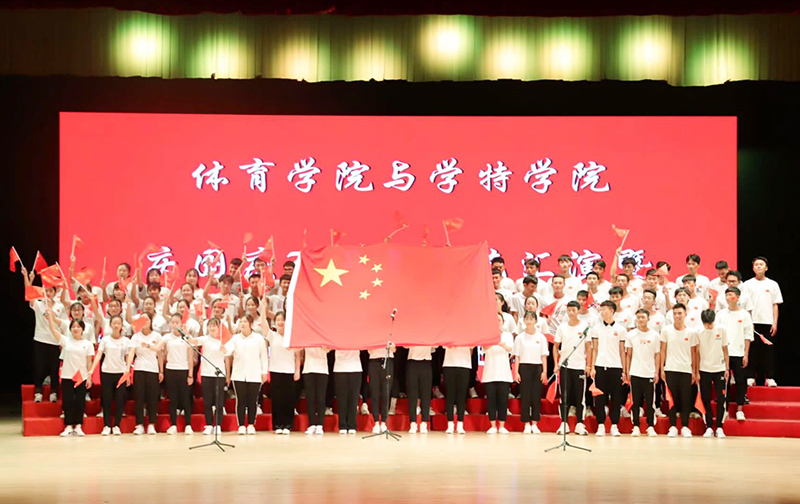 10月16日晚,为庆祝中华人民共和国成立70周年,同时热烈欢迎我院2019级新生的到来,由学特学院和体育学院团总支学生会联合举办的庆国庆70周年文艺汇演暨“学体并济、以心迎新”晚会在beat365官方网站学生会堂拉开帷幕。