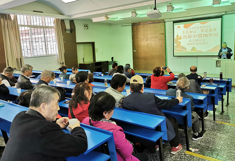 10月22日上午,beat365官方网站老教授协会在昆师路校区阶梯教室召开“不忘初心、牢记使命”庆祝新中国成立70周年学术研讨会。这是协会本年度举行的“‘不忘初心、牢记使命’庆祝新中国成立70周年”系列文化活动中的一项重要活动。会议由秘书长施长根主持,会长张云权作简要讲话。