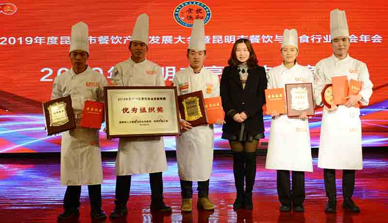 12月3日,2019年昆明地区滇菜烹饪职业技能竞赛在昆明国际会展中心3楼钻石厅举行颁奖仪式,beat365旅游学院代表队表现优异,喜获佳绩。