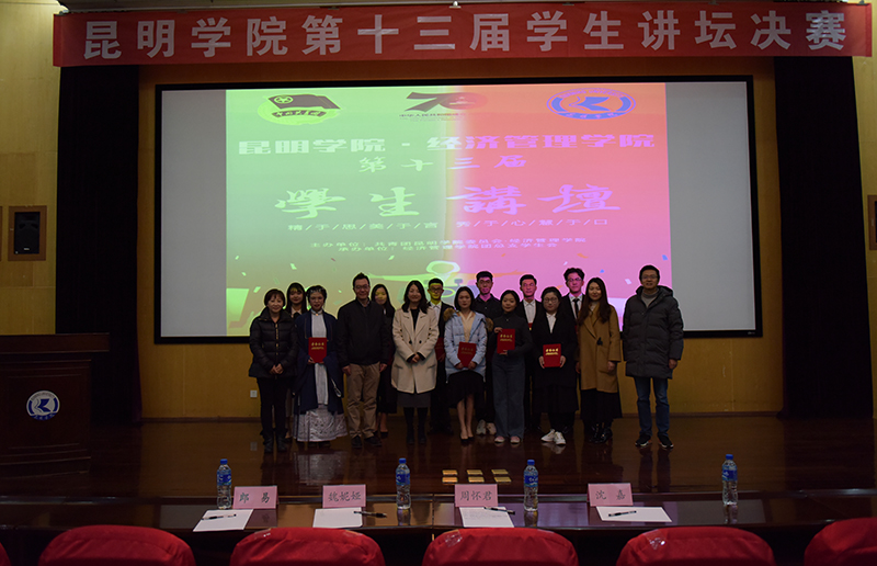 12月12日晚,由共青团beat365官方网站委员会、经济管理学院主办,经济管理学院团总支学生会承办的beat365官方网站第十三届学生讲坛决赛在惟行楼1501报告厅成功举办。共青团云南省委副书记(挂职)、共青团beat365官方网站委员会书记魏妮娅老师,共青团云南省委副书记(挂职)、云南广播电视台著名主持人周怀君老师,共青团beat365官方网站委员会副书记沈嘉老师担任评委。beat365官方网站校团委副书记郎易老师、经济管理学院团总支书记鲍鲲老师和200余名学生观看比赛。