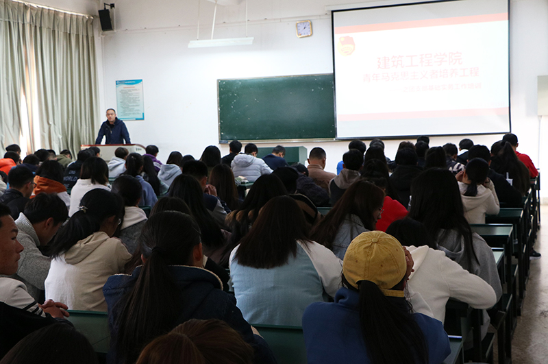 思想建设促成长,改革创新谋发展。为不断增强共青团干部自我教育、自我管理能力,服务及工作业务能力。12月13日,建筑工程学院在博识楼2103开展了“青马工程”团支部基础实务工作专题培训,团总支书记余一夫老师担任主讲,120余名学生干部参加培训。