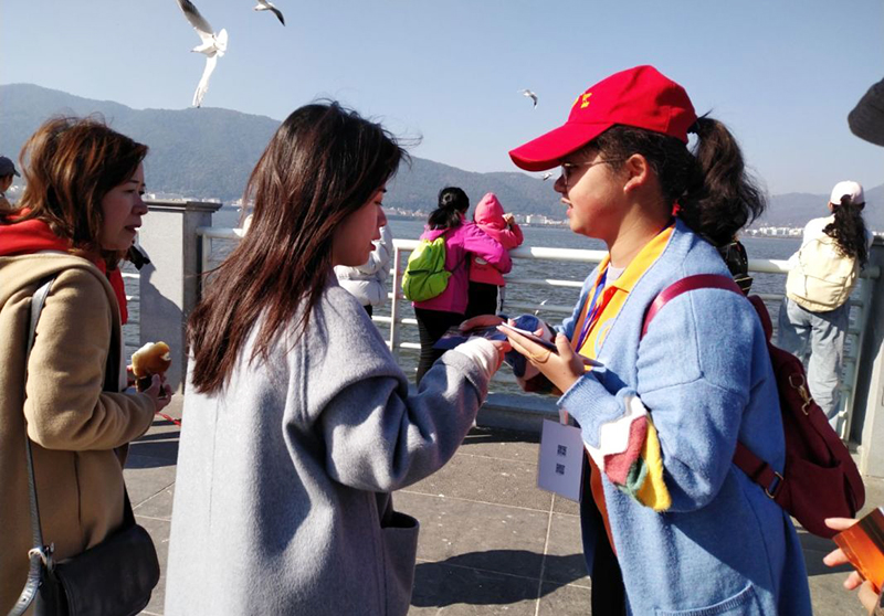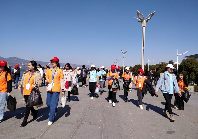 志愿者们到达海埂大坝,沿大坝捡拾垃圾,向附近的游客介绍红嘴鸥的相关知识,赠送他们beat365官方网站的明信片留作纪念,号召大家爱护红嘴鸥,共同为美丽的红嘴鸥创造一个良好的生存环境。