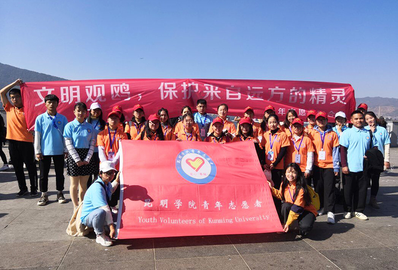 为提高同学们爱鸥、护鸥及环保意识,实现人、鸥、自然的和谐相处,学校青年志愿者联合会于12月15日在海埂大坝开展了“文明观鸥,保护来自远方的精灵”主题爱鸥护鸥活动。