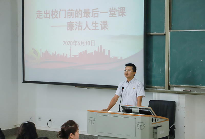 杨光明书记以“清白做人、踏实做事”为主题给毕业生上“走出校门前的最后一课——廉洁人生课”。希望全体毕业生能够按照习近平总书记的讲话要求“扣好人生的第一粒扣子”,特别是党员同志一定要提高政治站位,在言行方面与党中央的决策部署、路线方针保持高度的一致,要进一步坚定理想信念,在未来的工作岗位上切实发挥党员的先锋模范作用。杨光明书记提出,全体毕业生继续加强政治理论、专业知识的学习,在岗位上廉洁自律、坚守底线,争取以昆院人的身份顺利毕业,在未来的道路上再创辉煌。