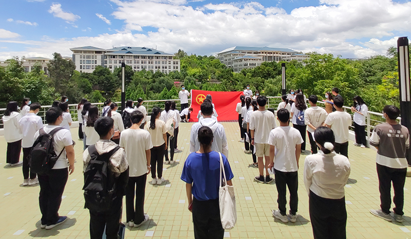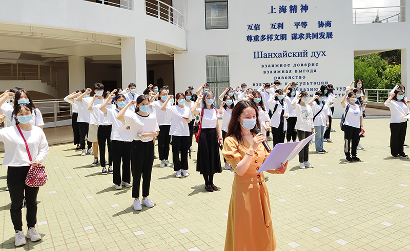 袁西老师带领团员宣誓。入团介绍人代表赵祖霞同学为新团员们宣读《团章》中有关团员的义务和权利的准则,让团员们进一步加深对团的认识。新团员代表刘启梅同学发言,她对加入中国共青团感到无比光荣和自豪,并将严格要求自己,提高综合素质,以实际行动践行入团誓言,贡献自己的青春力量。团委组织部常务副部长徐来仪同学代表老团员发言,鼓励新团员今后要努力向党组织靠拢,并对新团员们加入团组织表示热烈欢迎。 团委副书记沈嘉老师对本次入团仪式进行总结。他向加入团组织的50名新团员表示祝贺,希望同学们在实现中华民族伟大复兴中国梦的新长征路上奋勇搏击,要真正的在思想上入团,争做一名优秀的共青团员。并对新团员提出要求,一是要有理想、有爱国情怀,坚定理想信念,提高自身素质;二是要有担当、敢负责、甘奉献,让奋斗成为青春最亮丽的底色;三是要勤奋学习,并把所学知识运用到实践中去,为祖国和社会贡献力量。
