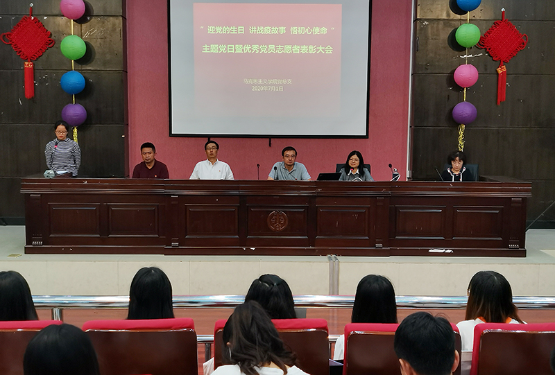 砥砺复兴之志,永葆赤子之心。为庆祝中国共产党成立99周年,7月1日,马克思主义学院党总支开展“迎党的生日 讲战疫故事 悟初心使命”主题党日活动暨优秀党员志愿者表彰大会。马克思主义学院党总支书记王宁,院长陈嘉,副书记付晏昆,副院长沈艳萍、姚晓林参加活动,学院全体党员、入党积极分子、团学干部、各班级代表参加。