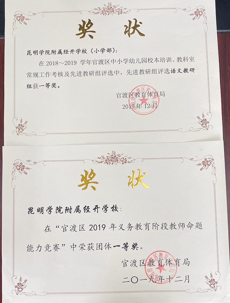 在“明德至善 知行利物”总校训和“善孝包容 健康自理”校训的引领下,附属学校坚持立德树人初心,坚持为党育人为国育才使命。经过三年多的办学努力,学校不断被社会各界所认可,取得了一次又一次的进步。在上一年度中,经过全校教职员工的不懈努力,杨英鹤老师被评为昆明市名班主任,胡瑞老师被拟命名为昆明市第四届名班主任荣誉称号,何丽芬老师被评为昆明市教坛新秀,田春丽老师被评为官渡区骨干教师,何丽芬老师和屠懿漩老师被评为官渡区教坛新秀。
