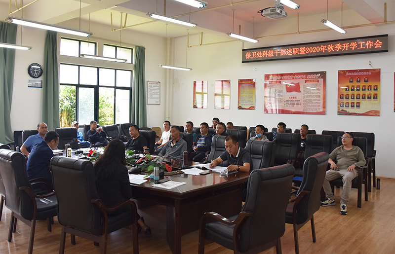 张智益副处长传达了丁校长在9月14日学校安全工作会上的讲话精神,要求全处干部职工将思想和行动统一到丁校长的讲话精神上来。回顾了保卫处假期至今的工作,通过保卫处全体干部职工共同努力,圆满完成“创文”迎检、疫情防控、专升本学生入学、老生返校、各种校外考试安保等各项工作。要求,一要加强政治和业务学习,不断提高自身综合素养;二要全力做好新生入学报到工作,确保新生入学安全顺利开展;三要进一步做好疫情防控常态化工作;四要加强“人防、物防、技防”建设,全力做好校园安全工作,确保校园安全稳定;五要以昆明市创建全国文明城市和学校创建全国文明校园为契机,抓好校园交通环境整治,制止校园不文明行为,提升保卫工作形象,营造平安和谐校园。