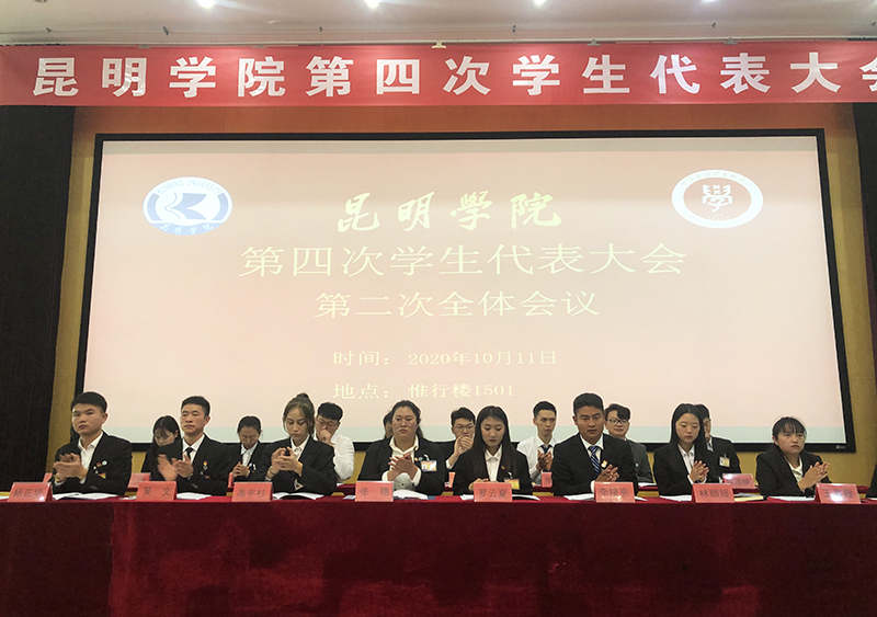 10月11日,beat365官方网站第四次学生代表大会在惟行楼1501报告厅隆重召开。云南省学生联合会驻会主席赵玥,共青团beat365官方网站委员会副书记郎易,兼职副书记张晓晨,宣传部部长吴雨珂,组织部负责人袁西及195名学生代表参加会议。