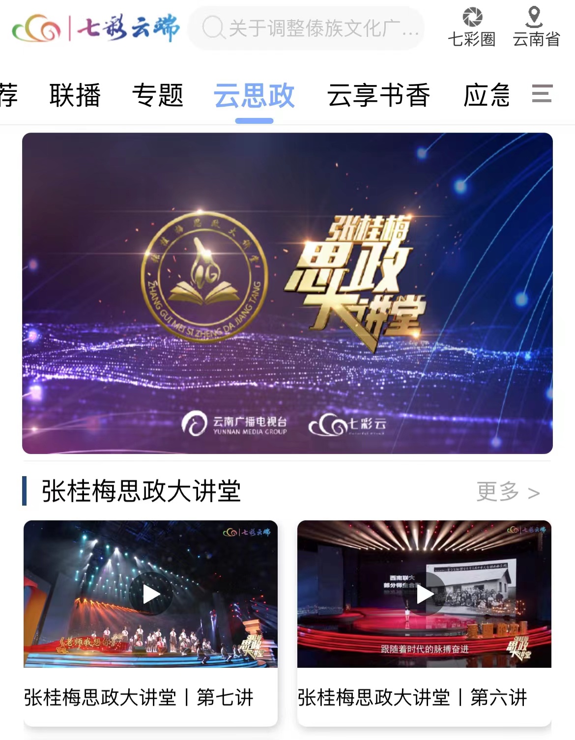“张桂梅思政大讲堂”第八讲《梦想的力量》将于2023年1月17日(星期二)21时许在云南卫视播出,七彩云端APP“云思政”频道将同步上线。请各单位认真组织师生收看。