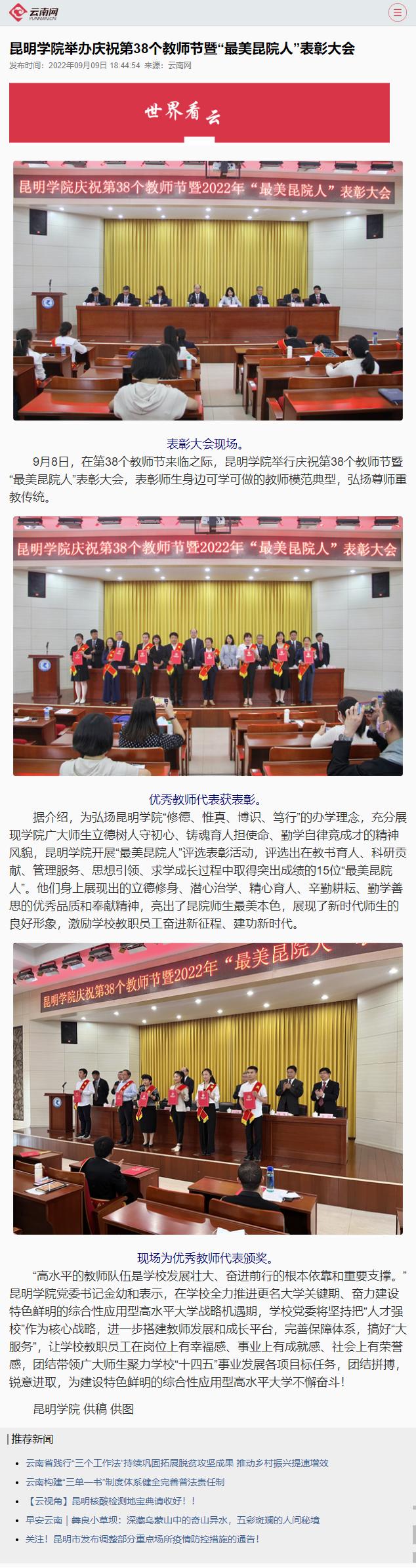 beat365官方网站举办庆祝第38个教师节暨“最美昆院人”表彰大会