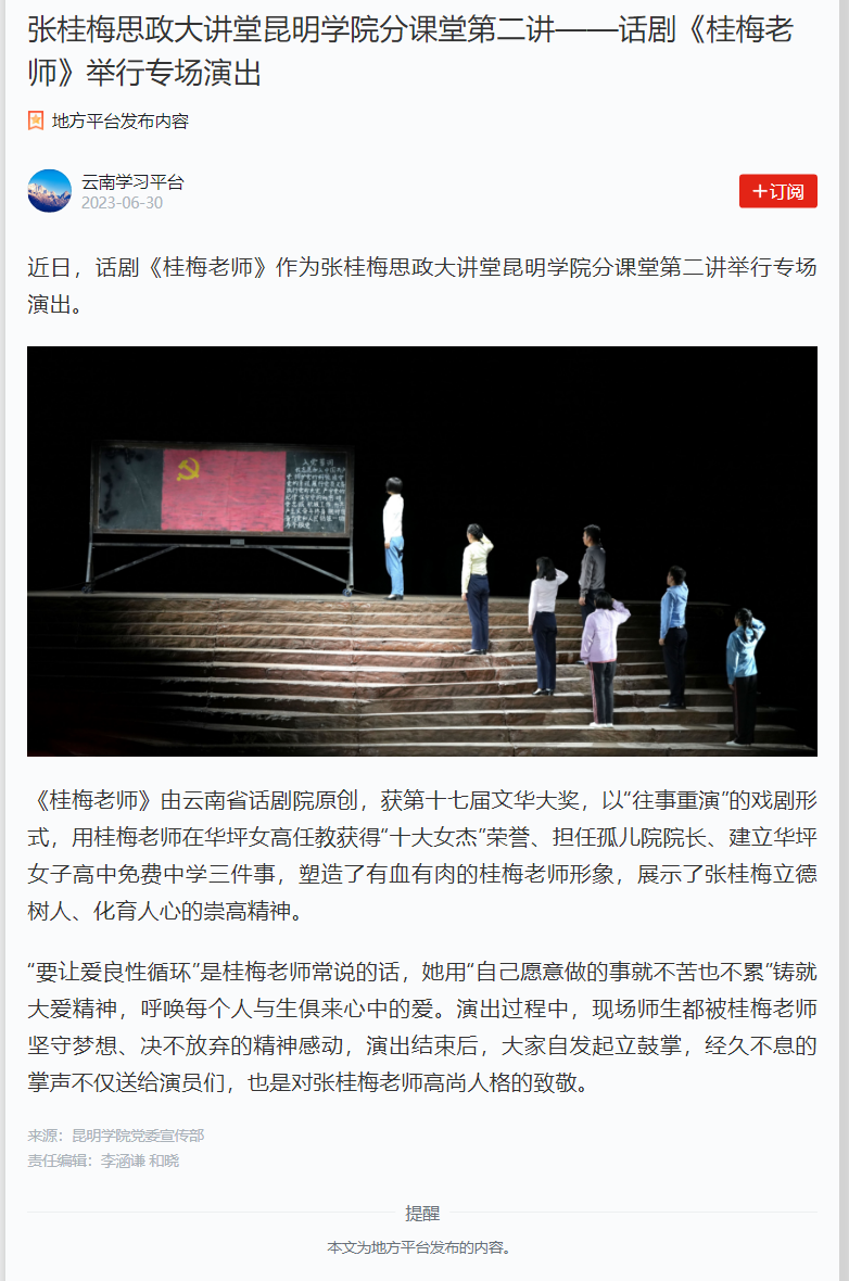 张桂梅思政大讲堂beat365官方网站分课堂第二讲-话剧《桂梅老师举行专场演出》