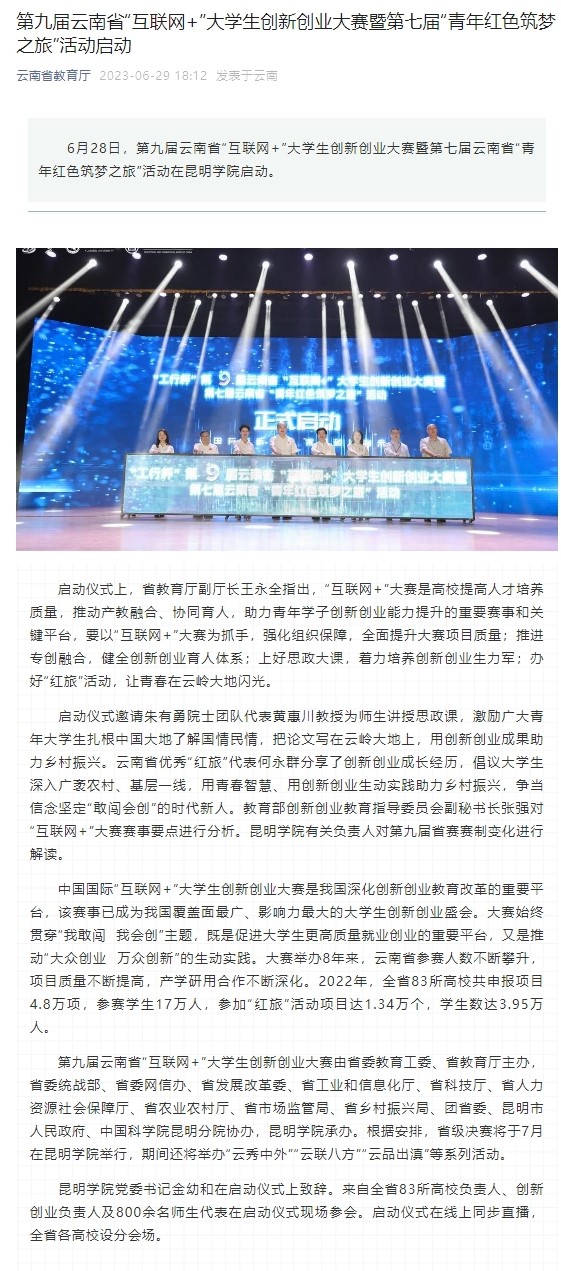 第九届云南省“互联网+”大学生创新创业大赛暨第七届“青年红色筑梦之旅”活动启动