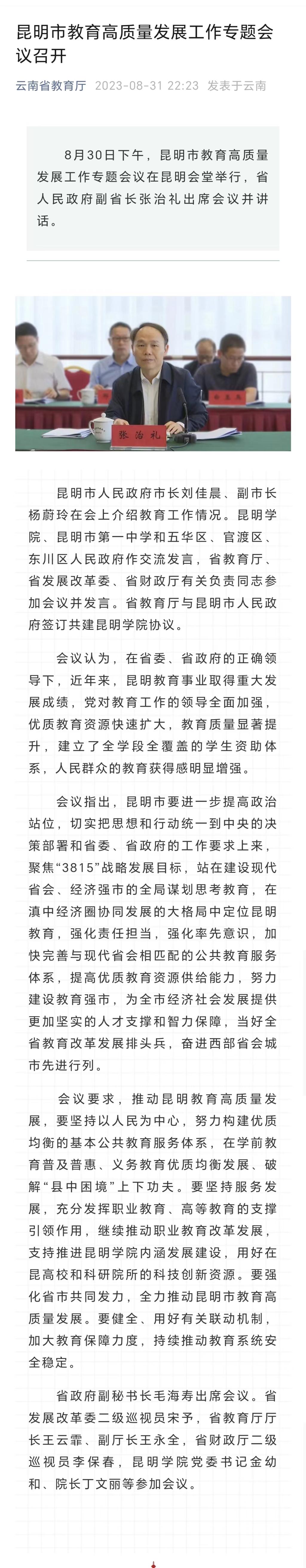 昆明市教育高质量发展工作专题会议召开