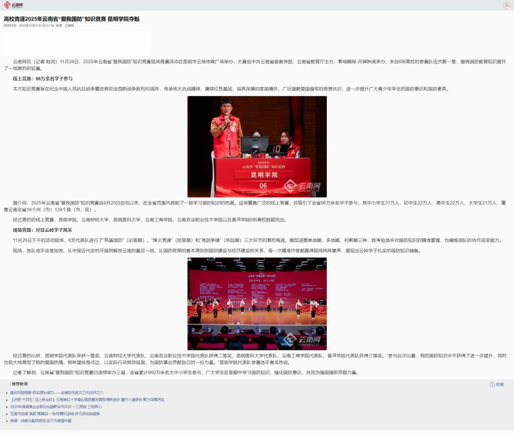 高校竞逐2025年云南省“爱我国防”知识竞赛 beat365官方网站夺魁