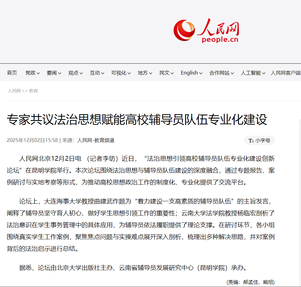 专家共议法治思想赋能高校辅导员队伍专业化建设
