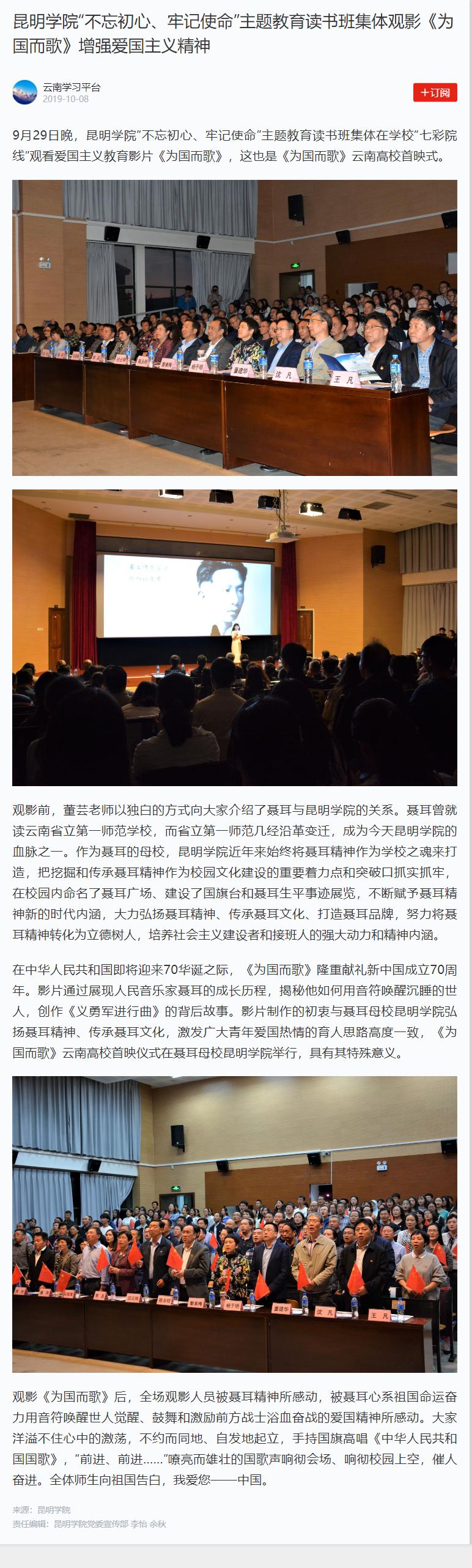 beat365官方网站“不忘初心、牢记使命”主题教育读书班集体观影《为国而歌》增强爱国主义精神