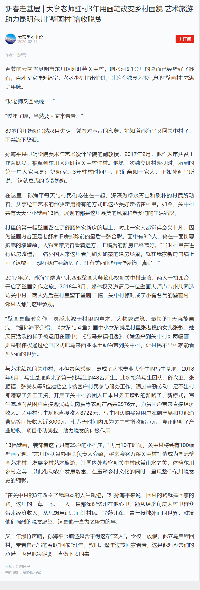 新春走基层 | 大学老师驻村3年用画笔改变乡村面貌 艺术旅游助力昆明东川“壁画村”增收脱贫