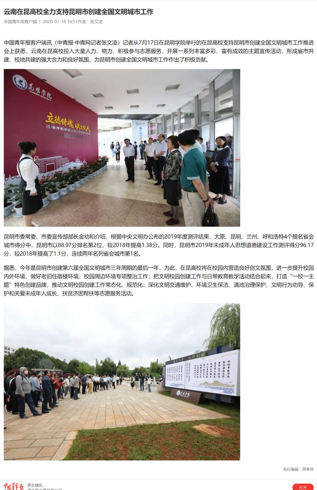 云南在昆高校全力支持昆明市创建全国文明城市工作