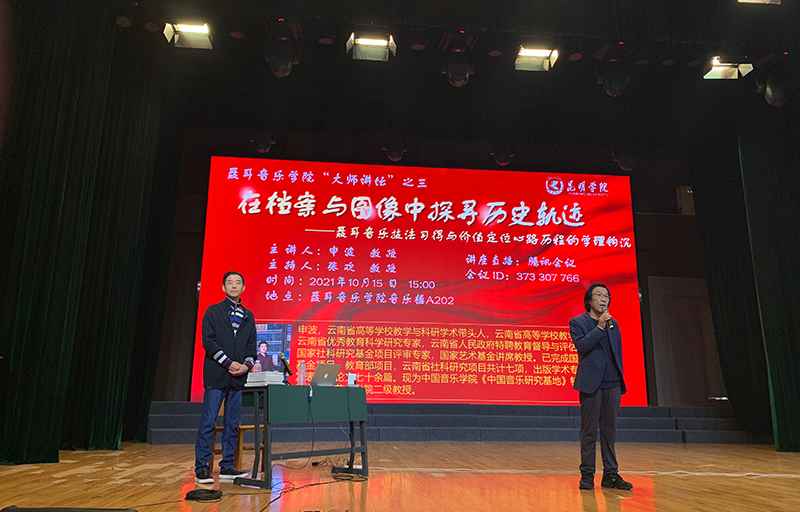 10月15日,聂耳音乐学院主办的聂耳音乐学院“大师讲坛”第三讲《在档案与图像中探寻历史的轨迹》在音乐楼A202开讲。云南艺术学院申波教授担任主讲,聂耳音乐学院执行院长张欢教授主持讲座,学院师生参与了本次讲座。