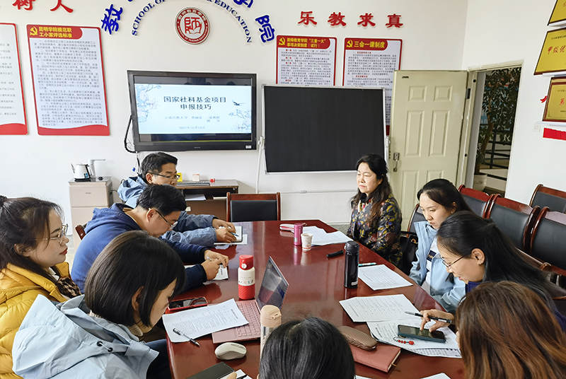 11月10日,教师教育学院在惟行楼5208会议室举办2022年度第三轮国家级课题申报指导会。会议特别邀请云南民族大学博士生导师普丽春教授到校作国家级课题申报指导,教师教育学院学术委员会成员和参与课题申报的教师参会,会议由教师教育学院副院长王宇娇主持。