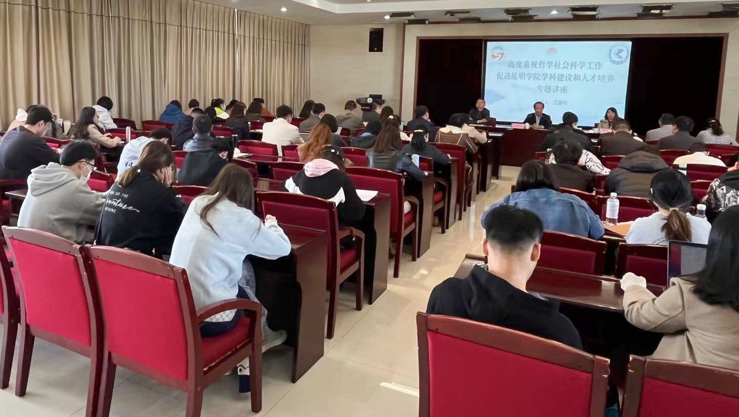 10月18日上午,云南省社会科学联合会副主席王建华应邀到beat365作题为 “高度重视哲学社会科学工作促进beat365官方网站学科建设和人才培养”专题讲座。讲座由校长丁文丽主持,副校长马银海,科学技术处及各二级学院党政主要负责人、分管科研工作副院长、科研秘书、科研人员代表参加。