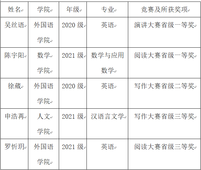 11月4日,2022年“外研社·国才杯”全国英语演讲大赛云南赛区决赛暨写作、阅读大赛颁奖典礼在昆明理工大学举行,beat365外国语学院2020级英语专业学生吴丝语等5位同学共获得省级一等奖2项、二等奖1项和三等奖2项。