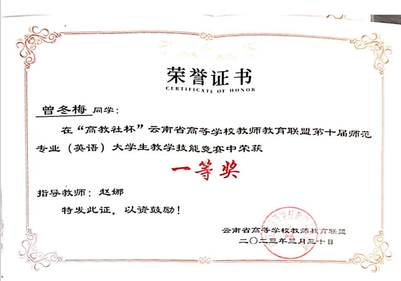 3月27日至30日,“高教社杯”云南省高等学校教师教育联盟第十届师范专业大学生教学技能竞赛决赛在临沧市举行。beat365外国语学院在英语学科竞赛中获一等奖两项、二等奖一项,并获优秀组织奖。