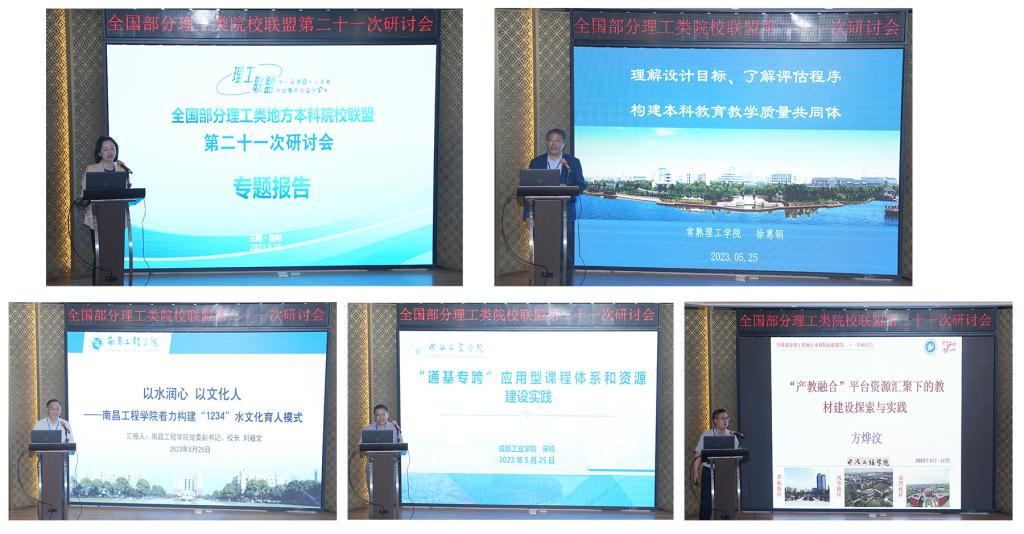 上海电机学院校长龚思怡主持第一场专题报告。常熟理工学院、南昌工程学院、成都工业学院、宁波工程学院作交流报告