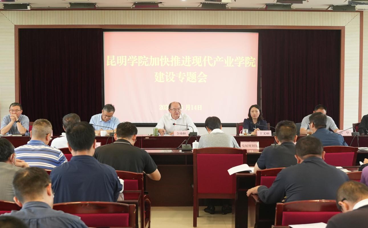 6月14日,学校召开加快推进现代产业学院建设专题会,深入学习贯彻习近平新时代中国特色社会主义思想和党的二十大精神,全面贯彻落实全省教育发展大会精神,进一步深化思想认识,厘清工作思路,明确目标举措,努力把现代产业学院建优建强,着力推动特色鲜明的综合性应用型高水平大学建设取得新成效。